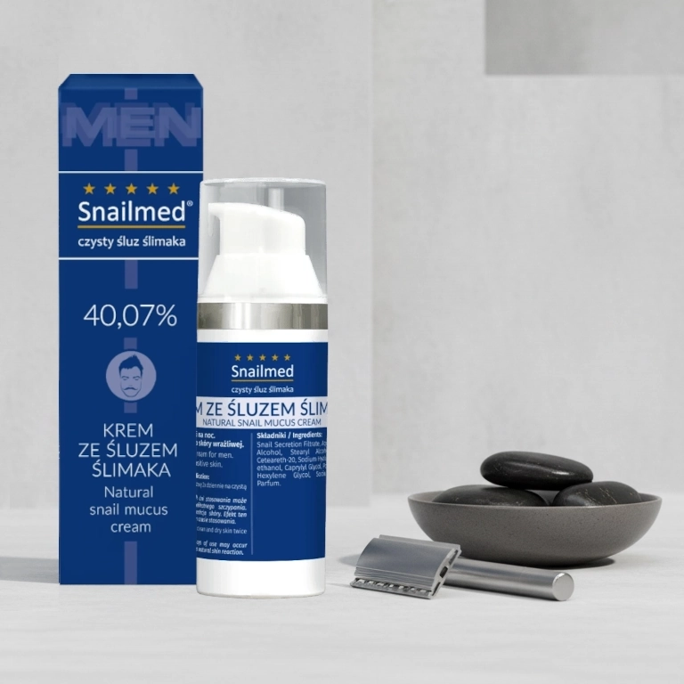 Wielofunkcyjny krem przeciwzmarszczkowy dla mężczyzn to prawdziwa esencja natury, z formułą opartą na składnikach o udowodnionym działaniu. Główny składnik – śluz ślimaka, ceniony w azjatyckich kosmetykach, jest bogatym źródłem alantoiny, kolagenu i elastyny wspomagające regenerację skóry, redukując drobne zmarszczki. Śluz ten, będący podstawą kremu na zmarszczki dla mężczyzn, działa intensywnie regenerująco.