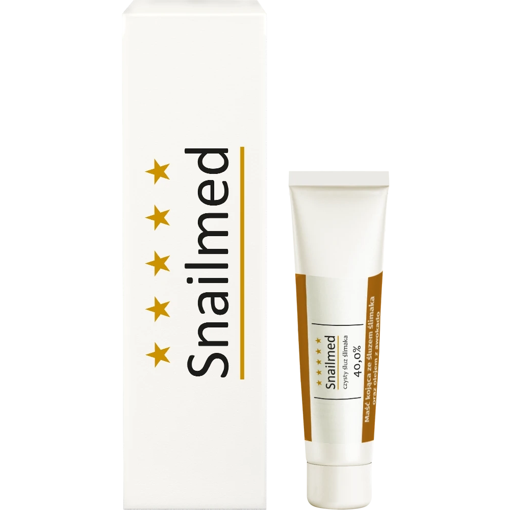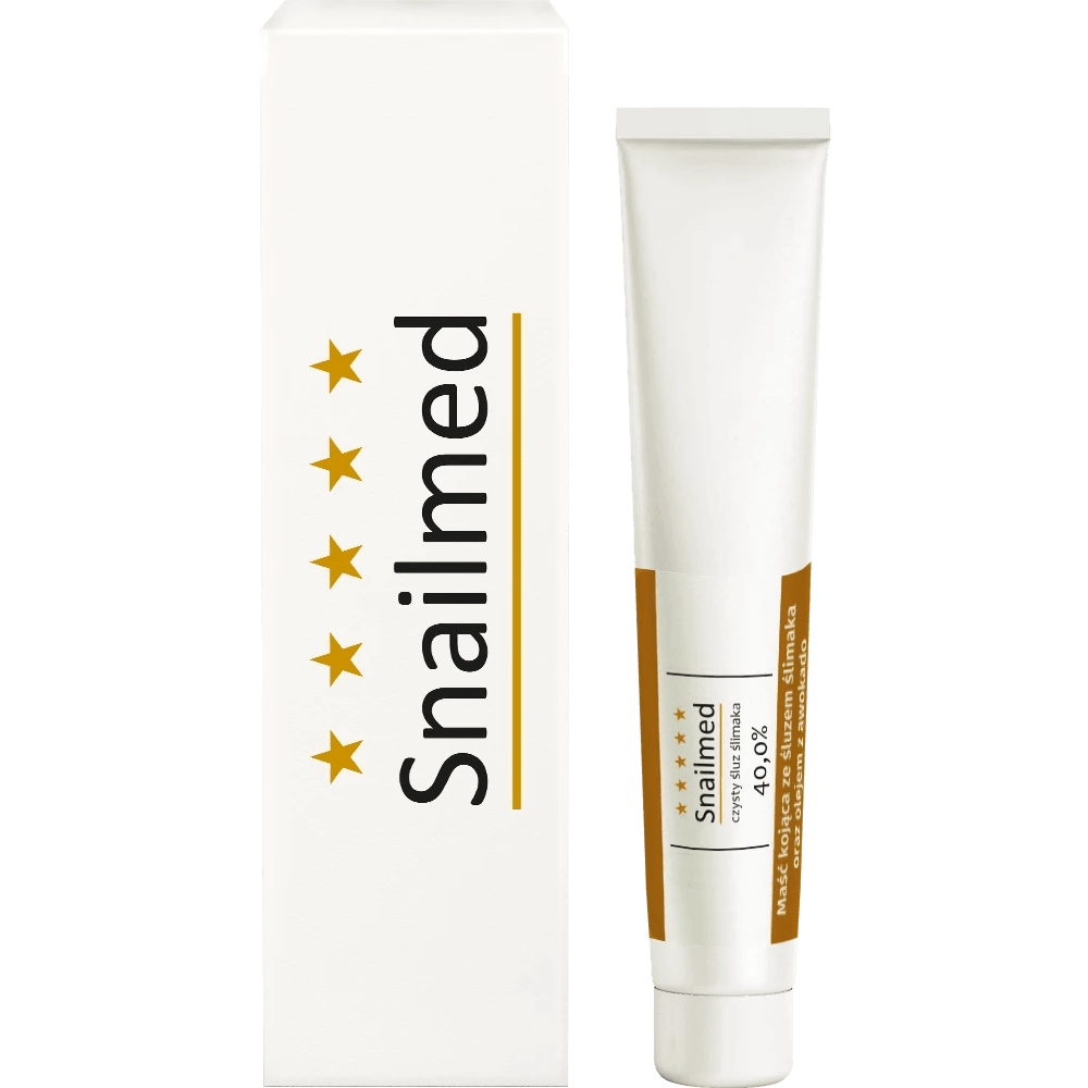 Maść idealna. Produkt obowiązkowy w domowej apteczce. Najwyższej jakości preparat dermokosmetyczny, którego prawie połowa objętości (40,07% całej formuły) to skoncentrowany, czysty śluz ślimaka. Maść niezwykle skuteczna i wydajna w użyciu, o wielokierunkowym i kompleksowym działaniu regeneracyjnym, dobroczynnym dla skóry. Bestseller firmy Snailmed.