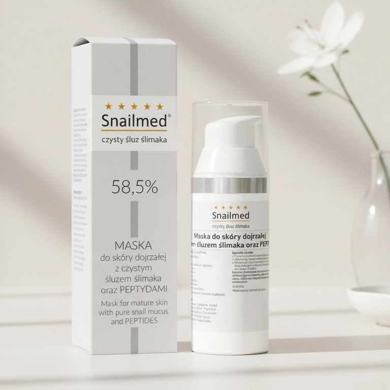„Odżywczo regenerująca maska do skóry dojrzałej, z Peptydami biomimetycznymi, na bazie naturalnego, czystego śluzu ślimaka w wysokim stężeniu 58,5%”