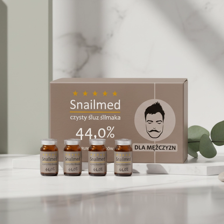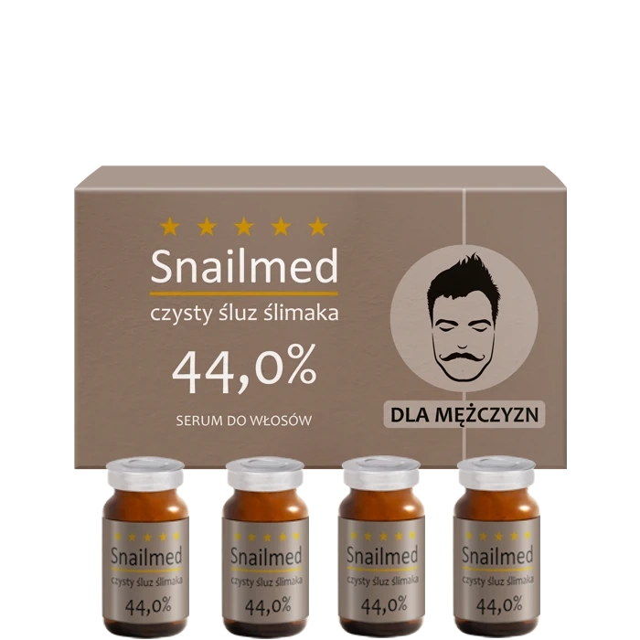 Regularnie stosowane „Odżywczo wzmacniające serum do włosów i brody dla mężczyzn, na bazie naturalnego, czystego śluzu ślimaka w wysokim stężeniu 44,0%” marki Snailmed: