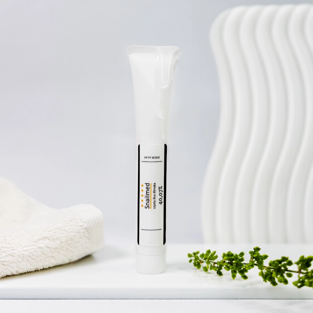 Regularnie stosowany „Przeciwstarzeniowy codzienny krem do twarzy Czarna Perła z kwasem hialuronowym i witaminami, na bazie naturalnego, czystego śluzu ślimaka w wysokim stężeniu” marki Snailmed: